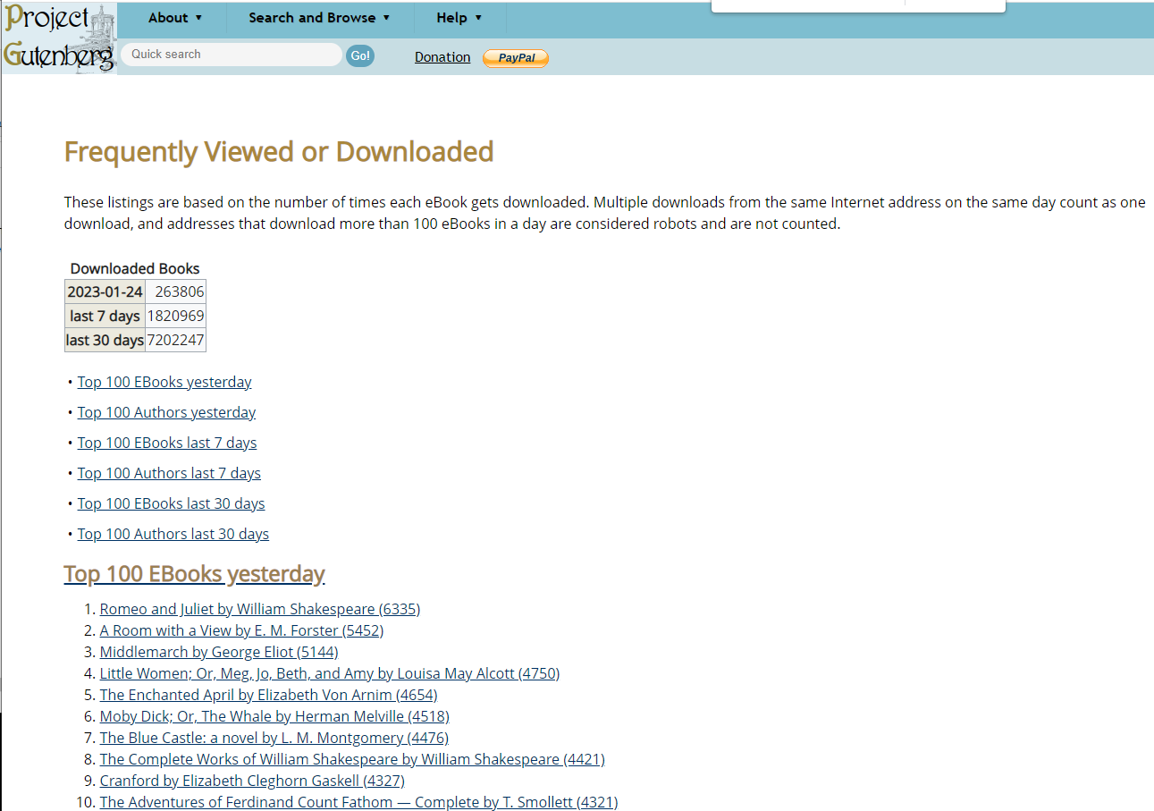 현재 2100권의 책이 인터넷으로 무료로 제공되고 있습니다. 검색은 [여기]를 이용하시고, 인기 책 목록은 [여기]에서 확인 가능합니다.